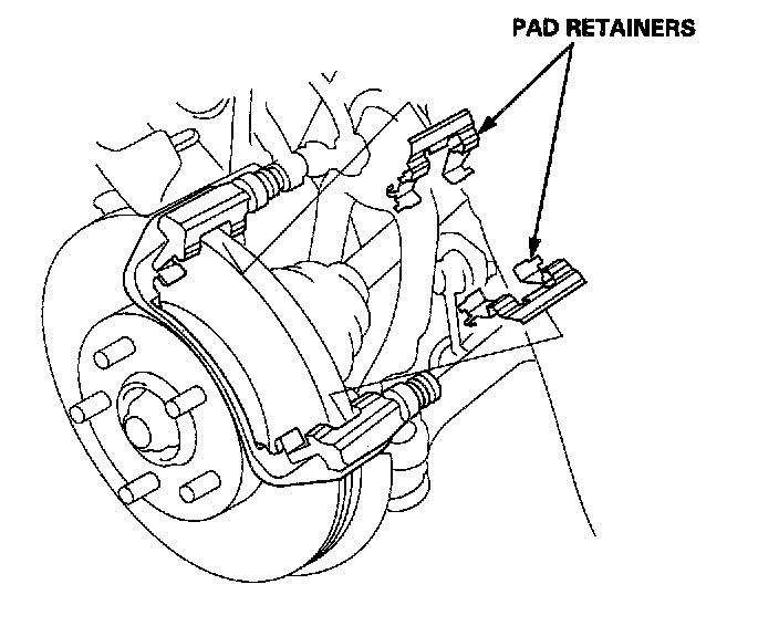 4. Remove the pad shims, pad retainers, and pads.
