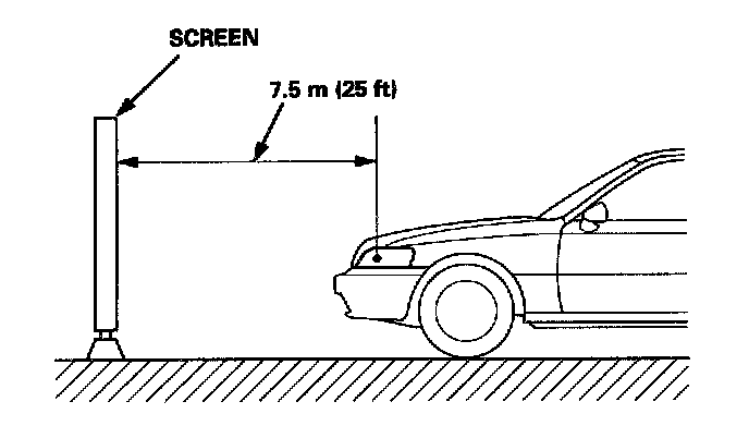 Measure the height of the headlights (A). The lights should reflect 52 mm (2.1 in.) below (B) the headlight height.