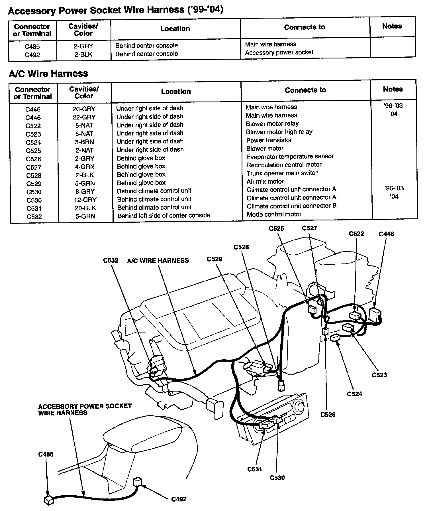 Accessory Power Socket Wire Harness ('99-'04) / A/C Wire Harness: