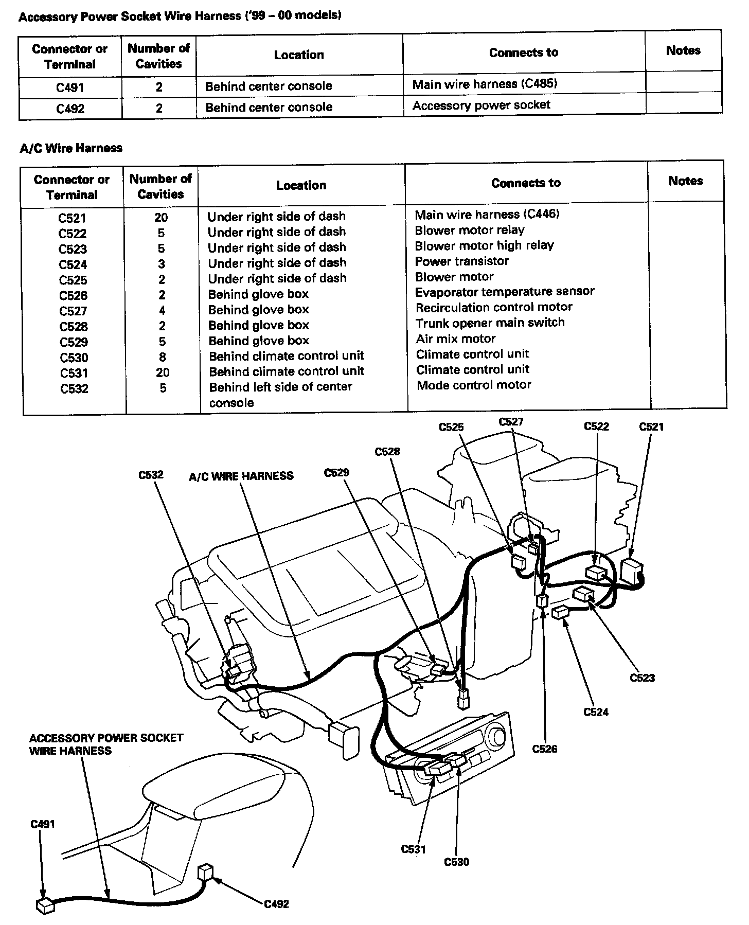Accessory Power Socket ('99-00 Models)/A/C Wire Harness - Index And View: