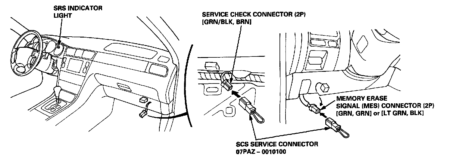 2. Connect the SCS service connector to the service check connector (2P). Do not use a jumper wire.