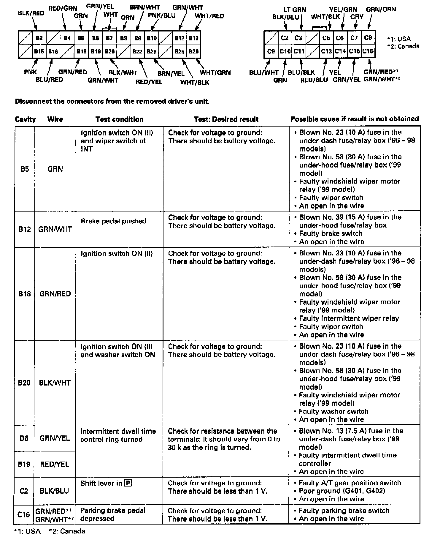 Wiper-Washer Control Unit / Input TestNOTE: