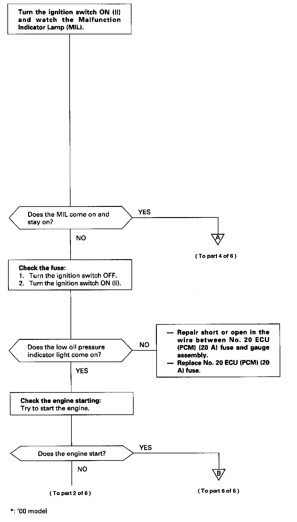 * The MIL never comes on after the ignition switch is turned ON (II).