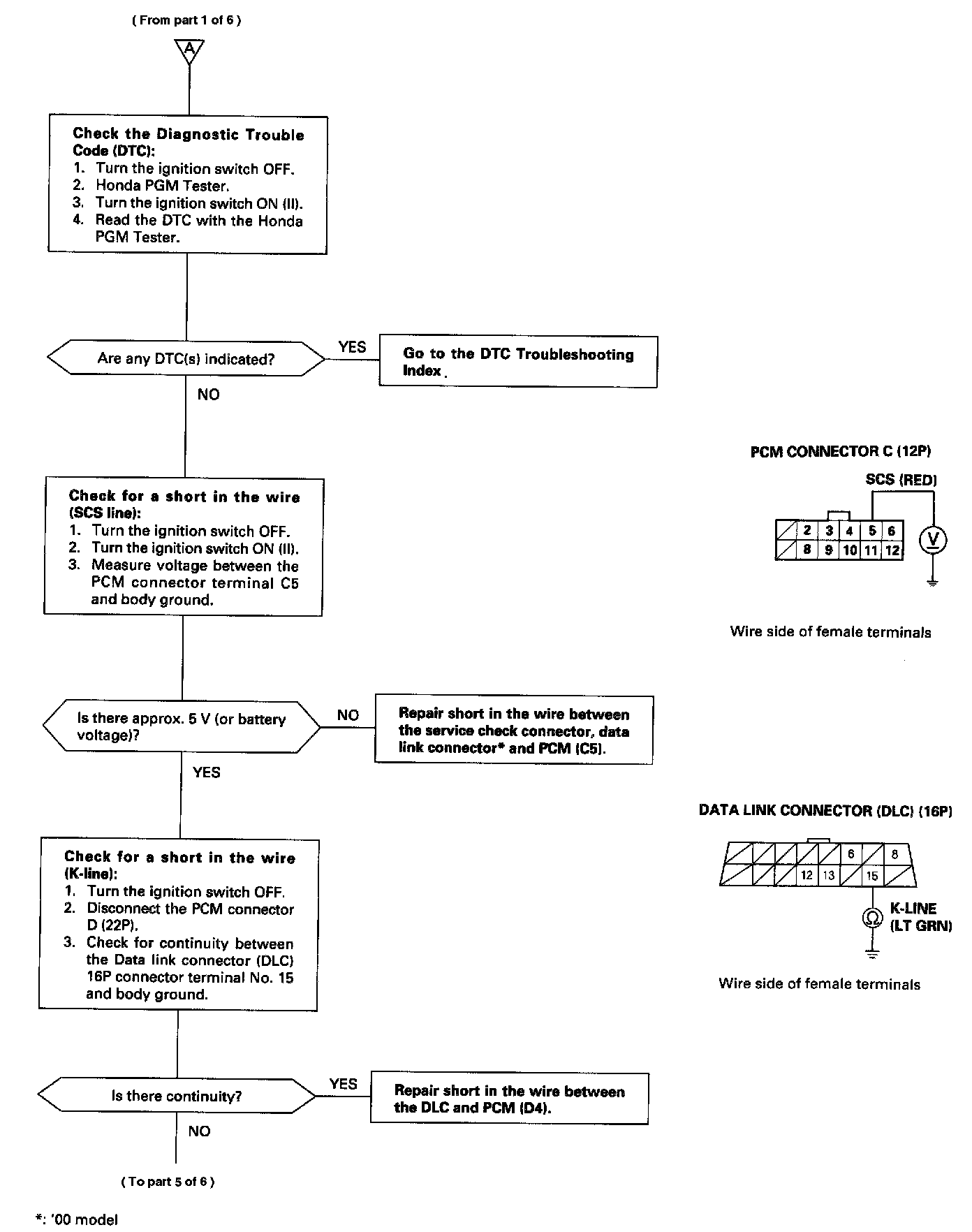 - An intermittent short in the wire between the PCM (C5) and the service check connector, data link connector**