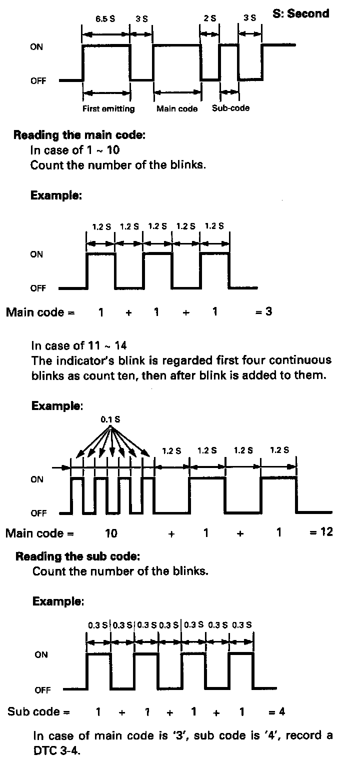 - In case of a continuous failure, the DTC will be indicated repeatedly (see example 1 in fig).