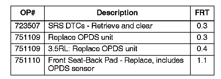 Repair the vehicle as indicated by the INSPECTION PROCEDURE. If needed, replace the OPDS unit. In rare cases where an updated OPDS unit was already installed, replace the OPDS sensor.