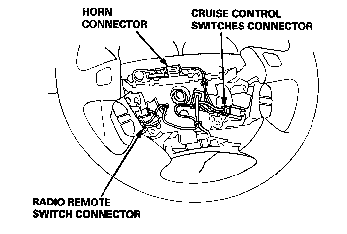 2. Disconnect the horn connector, cruise control switches connector and radio remote switch connector.