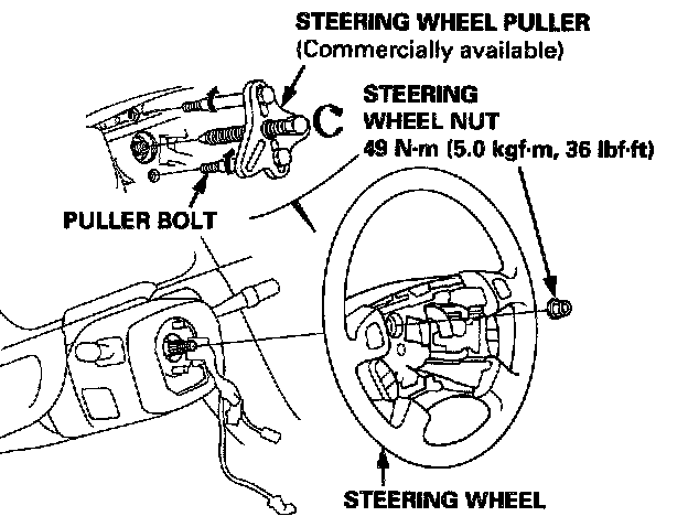 NOTE: Before removing the steering wheel, align the front wheels straight ahead.