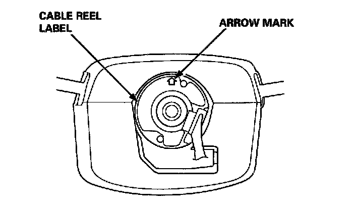 1. Before installing the steering wheel, center the cable reel. Do this by first rotating the cable reel clockwise until it stops. Then rotate it counterclockwise about two turns. The arrow mark on the cable reel label should point straight up.