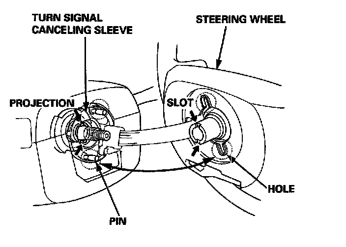NOTE: Be sure the steering wheel shaft engages with the cable reel and canceling sleeve.