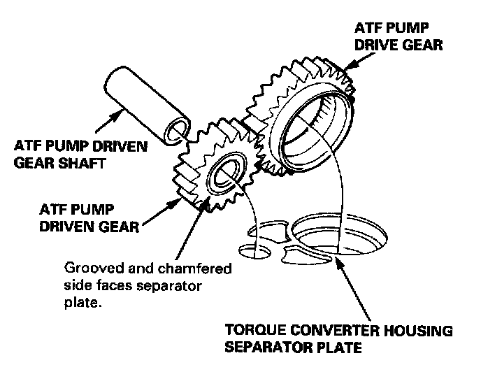NOTE: Install the ATF pump driven gear with its grooved and chamfered side facing down.