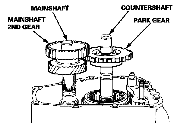 24. Combine the mainshaft 2nd gear with the park gear, then install them on their respective shafts.