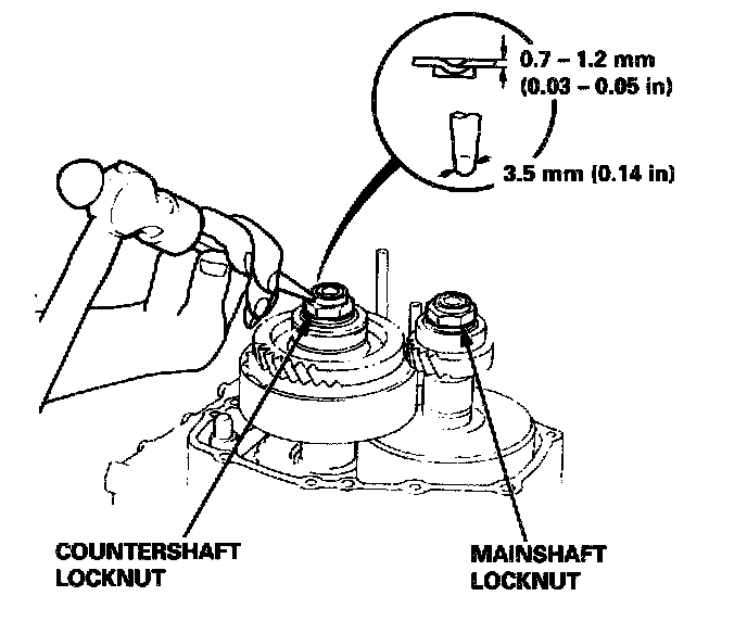 37. Stake each locknut into its shaft using a 3.5 mm (0.14 inch) punch as shown.