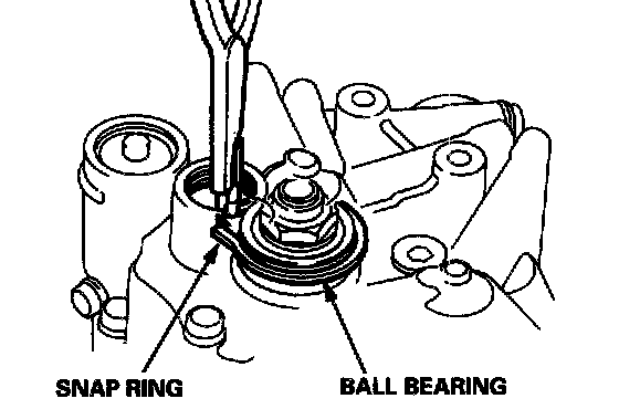 NOTE: Make sure the snap ring fits in place around the bearing. If not, raise the countershaft to fit the snap ring in place.