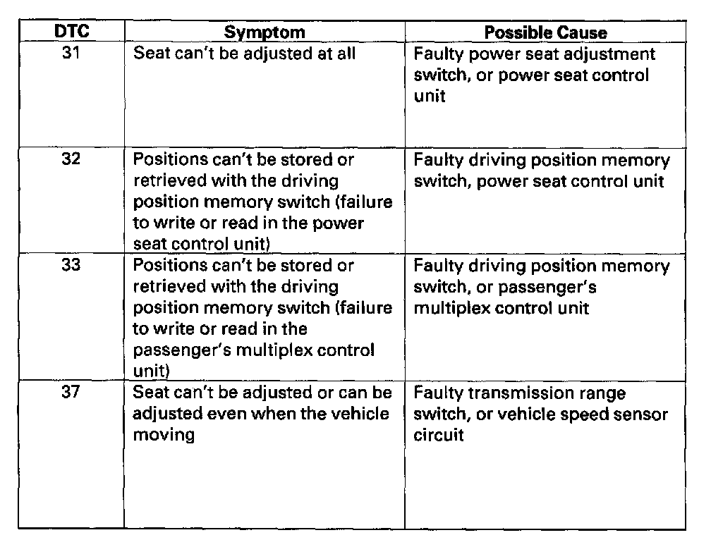 DTC List - Memory Position System