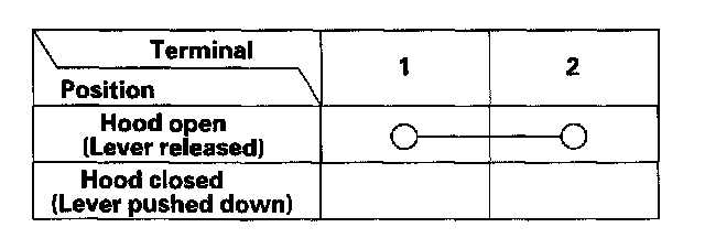 4. If the continuity is not as specified, replace the hood switch.