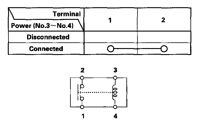 - There should be continuity between the No.1 and No.2 terminals when power and ground are connected to the No.3 and No.4 terminals.