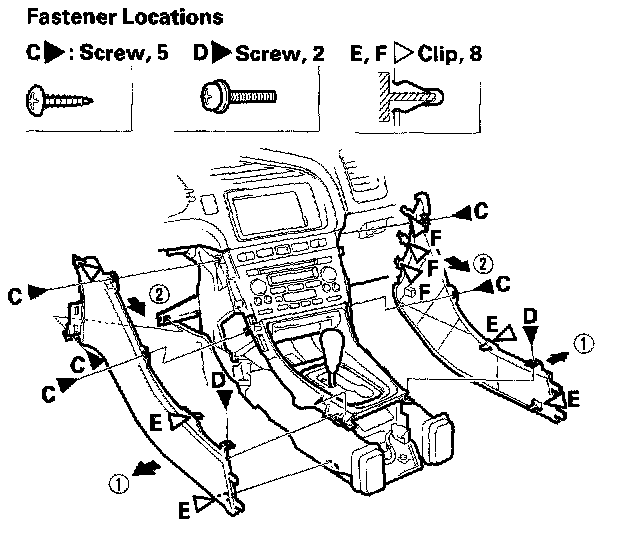 6. Install the console panel in the reverse order of removal, and note these items:
