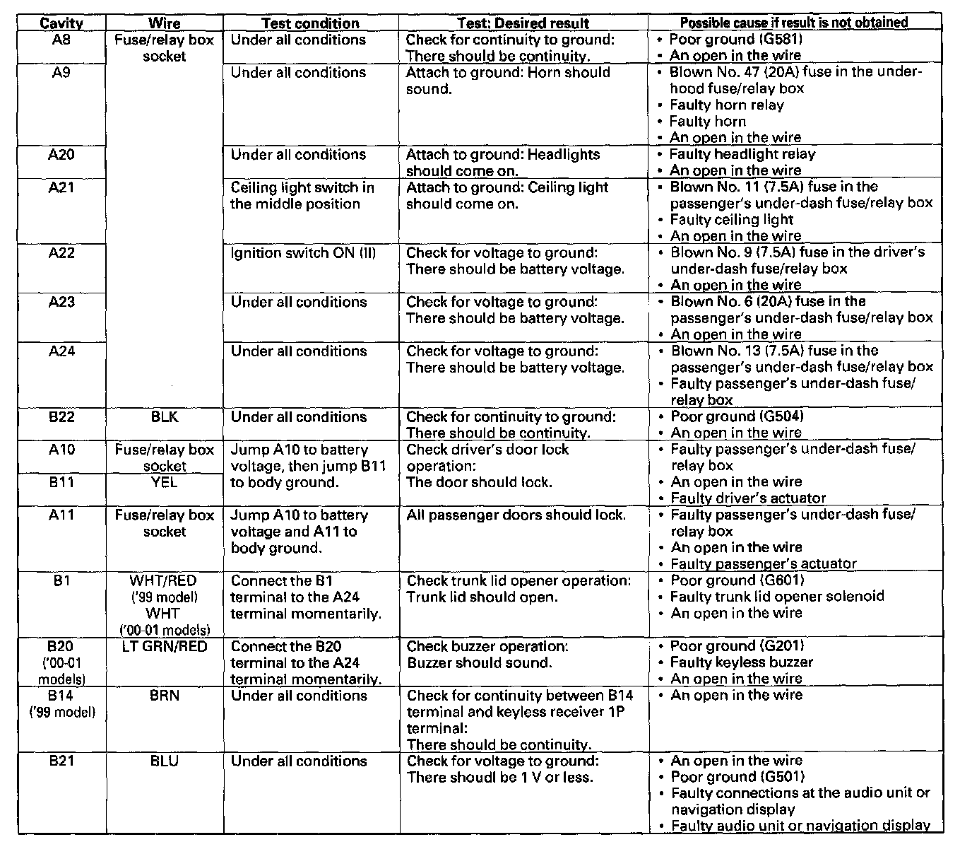14. If all the input tests prove OK, one of the control units must be faulty. Substitute a known-good control unit for the one that is most likely at fault, then recheck the system. If the system works properly, the original control unit is faulty; replace it. If there is still a malfunction, substitute a known-good control unit for the next most likely unit to be at fault, and recheck. If the system works properly, the original unit is faulty; replace it.
