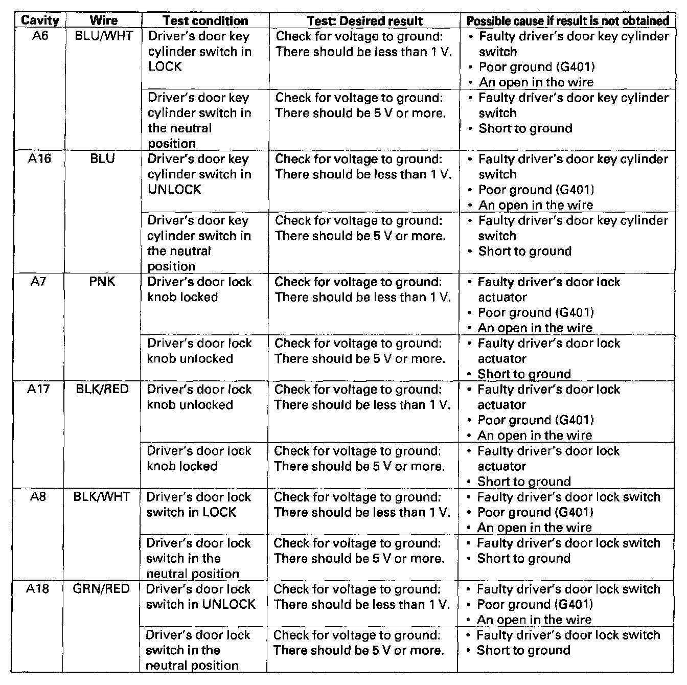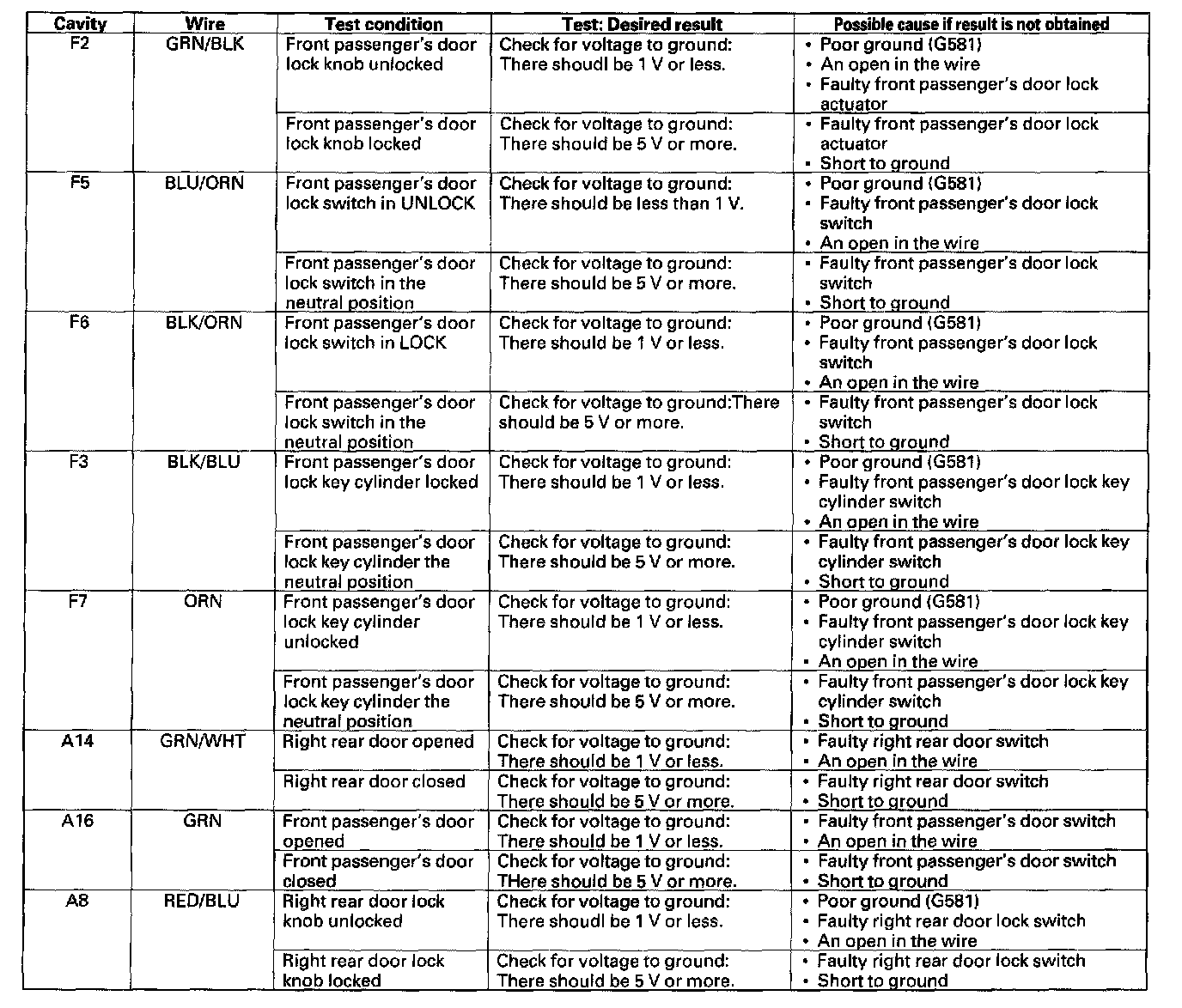 Power Door Lock Control Module: Testing and Inspection