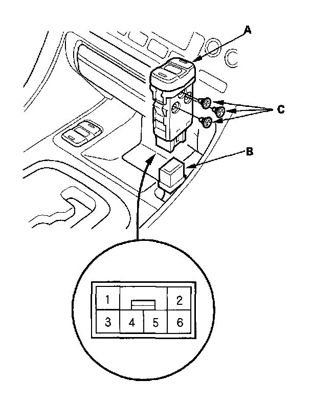 3. Disconnect the 6P connector (B) from the switch.