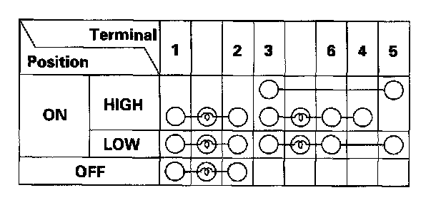 4. Check for continuity between the terminal in each switch position according to the table.