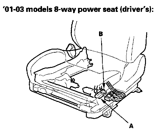 Front Seat Removal/Installation'00-03 models: SRS components are located in this area. Review the SRS component locations and the precautions and procedures in the SRS section before performing repairs or service.