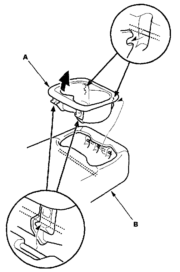 3. Remove the beverage holder (A) from the armrest (B).