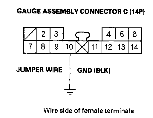 11. Connect the gauge assembly connector C (14P) terminal No. 10 to body ground with a jumper wire