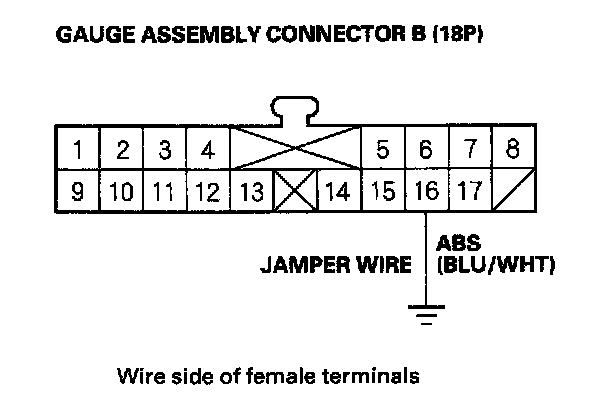 18. Connect the gauge assembly connector B (18P) terminal No. 16 to body ground with a jumper wire.