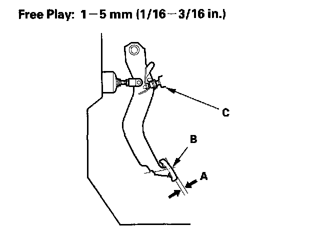 2. If the pedal free play is out of specification, adjust the brake pedal position switch (c). If the pedal free play is insufficient, it may result in brake drag.