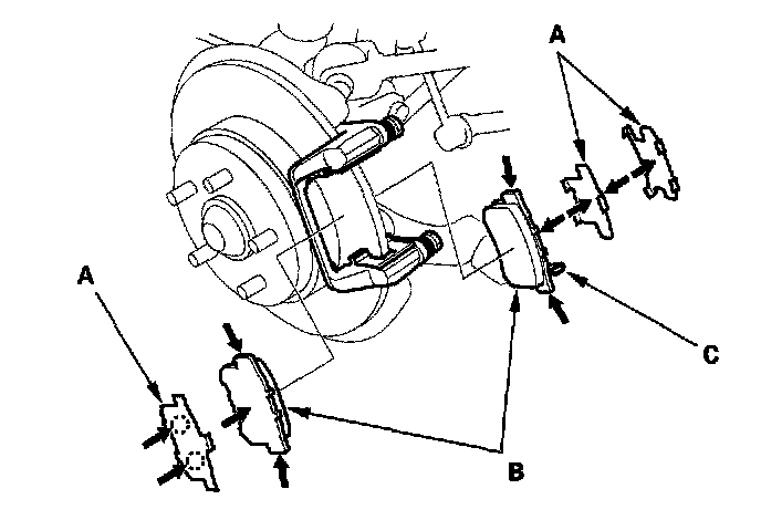 If you are reusing the pads, always reinstall the pads in their original positions to prevent a momentary loss of braking efficiency.