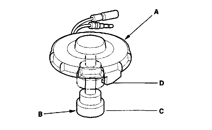 2. Check for continuity between the terminals with the float in the down position (C) and the up position (D):
