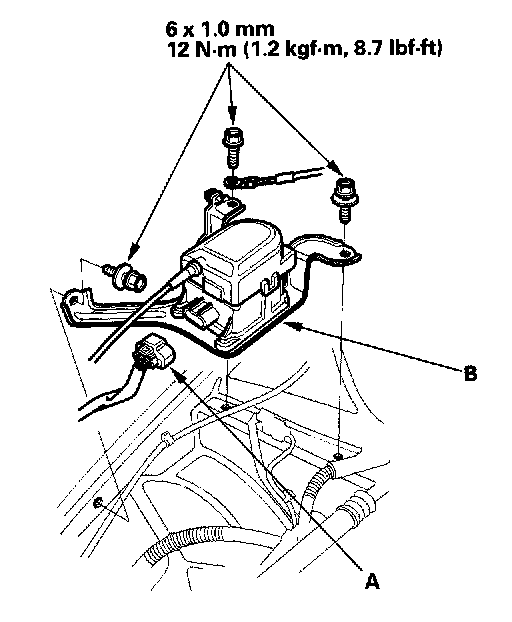 3. Remove the three mounting bolts, and remove the actuator assembly (B).
