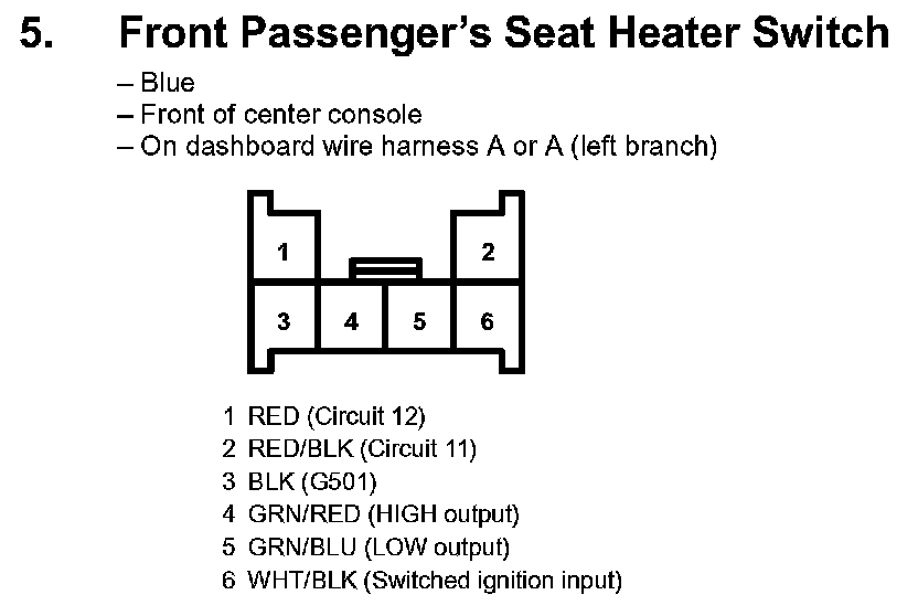 5. Front Passenger's Seat Heater Switch: