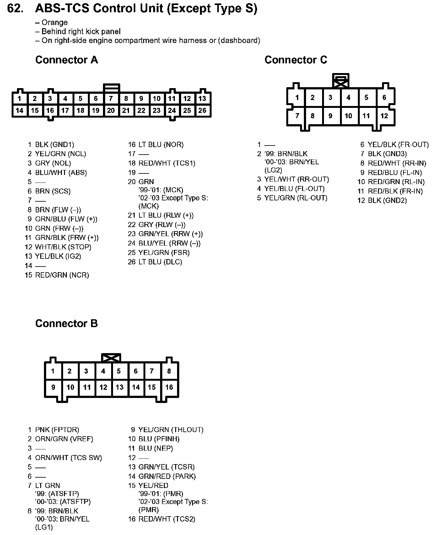 62. ABS-TCS Control Unit (Except Type S):