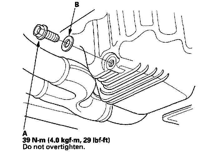 3. Reinstall the drain bolt with a new washer (B).