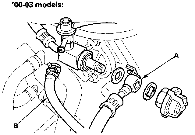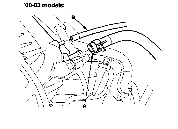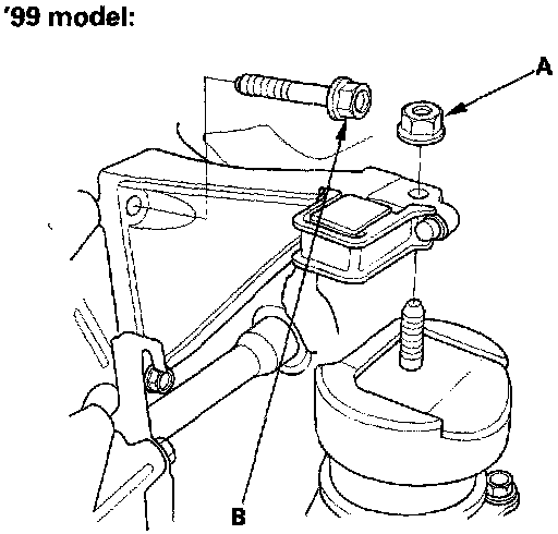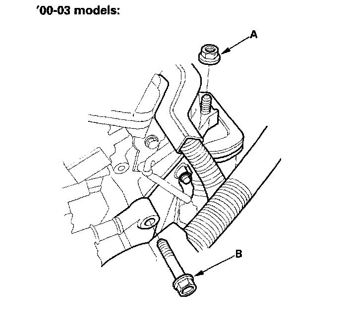 12. Remove the ground cable (B) ('02-03 models).
