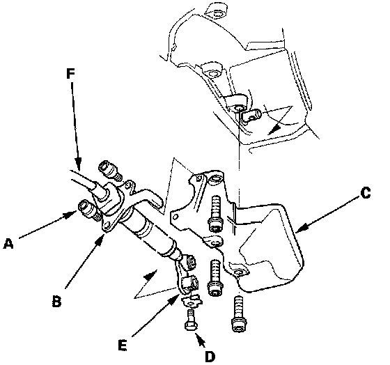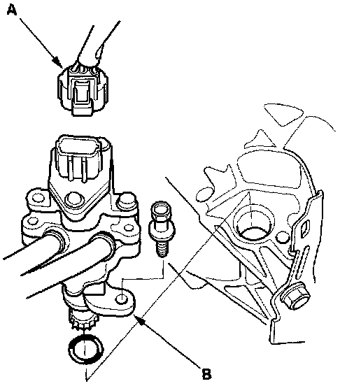 30. Remove the power steering speed sensor (B). Do not remove the hoses (J32A1 engine).