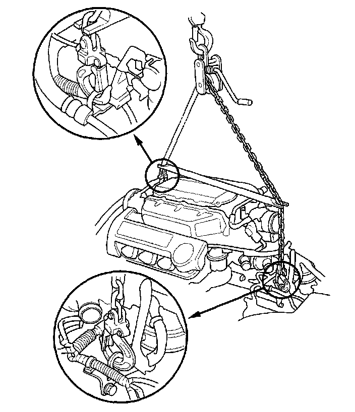 50. Attach the chain hoist to the engine as shown.