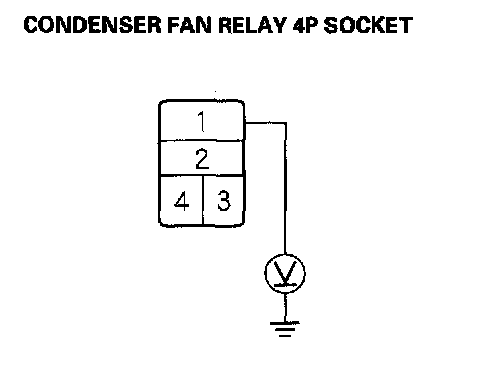 3. Measure the voltage between the No. 1 terminal of the condenser fan relay 4P socket and body ground.