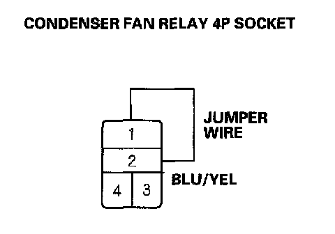 4. Connect the No. 1 and No. 2 terminals of the condenser fan relay 4P socket with a jumper wire.
