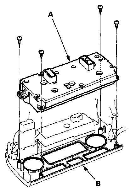 2. Remove the self-tapping screws and the climate control unit (A) from the instrument panel (B).