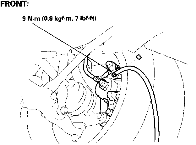 4. Loosen the left-front brake bleed screw to allow air to escape from the system. Then tighten the bleed screw securely.