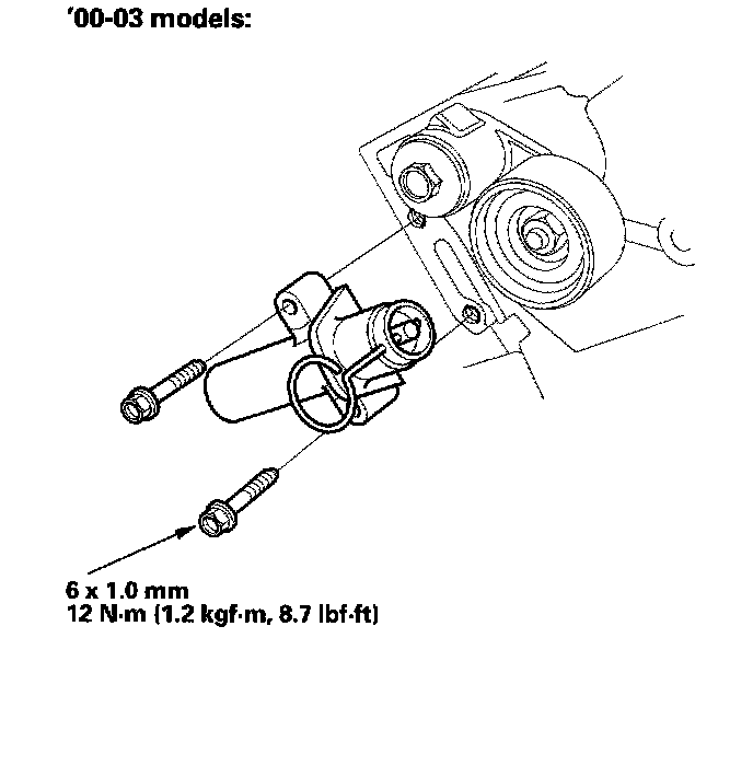 7. Clamp the boss of the auto-tensioner in a soft-jawed vise. Do not grip the housing of the autotensioner ('99 model).