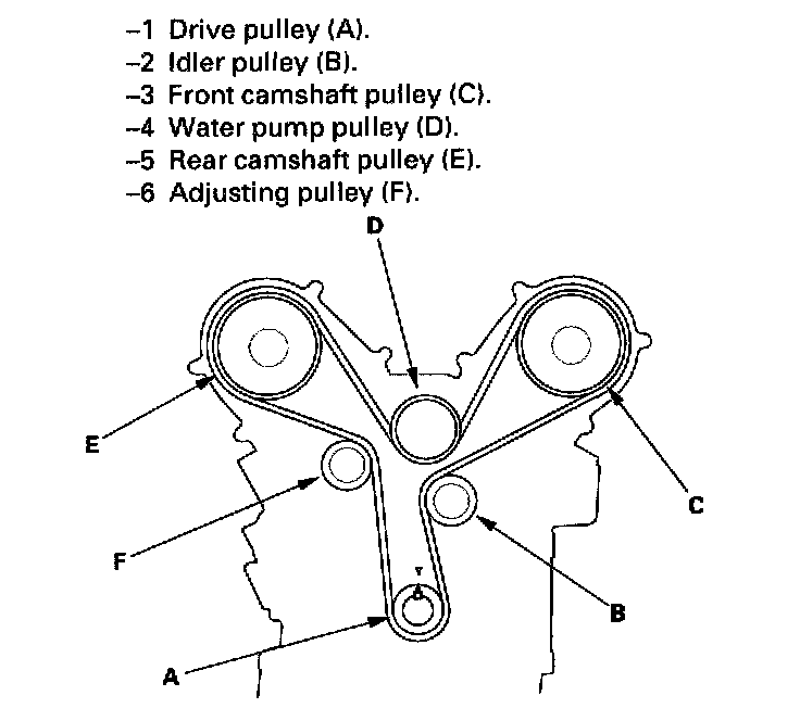 Timing Belt InstallationNOTE: The following procedure is for installing a new timing belt. If you are installing a used timing belt, refer to the next procedure.