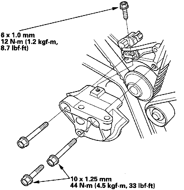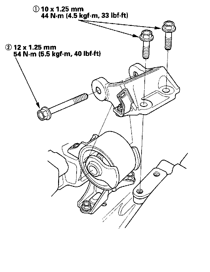 28. Install the side engine mount bracket, then tighten the mounting bolts in the numbered sequence shown.