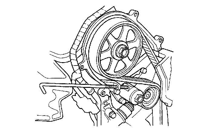 13. Rotate the crankshaft pulley about five or six turns clockwise so the timing belt positions on the pulleys.