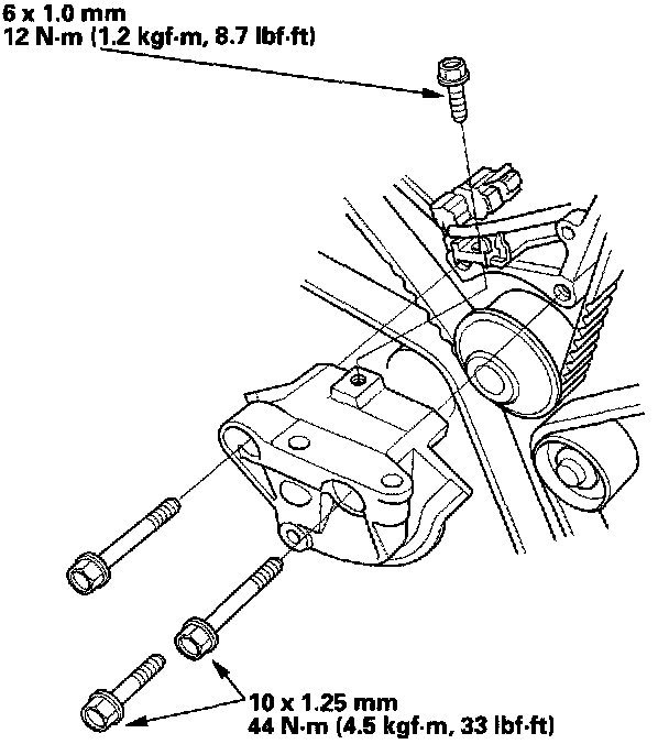 NOTE: Handle the auto-tensioner carefully so the oil inside does not spill or leak. If any of the oil has spilled or leaked out of the auto-tensioner, refill it with 5W-30 motor oil. The total capacity is 6.5 ml (0.22 fl oz).