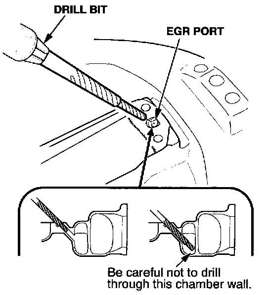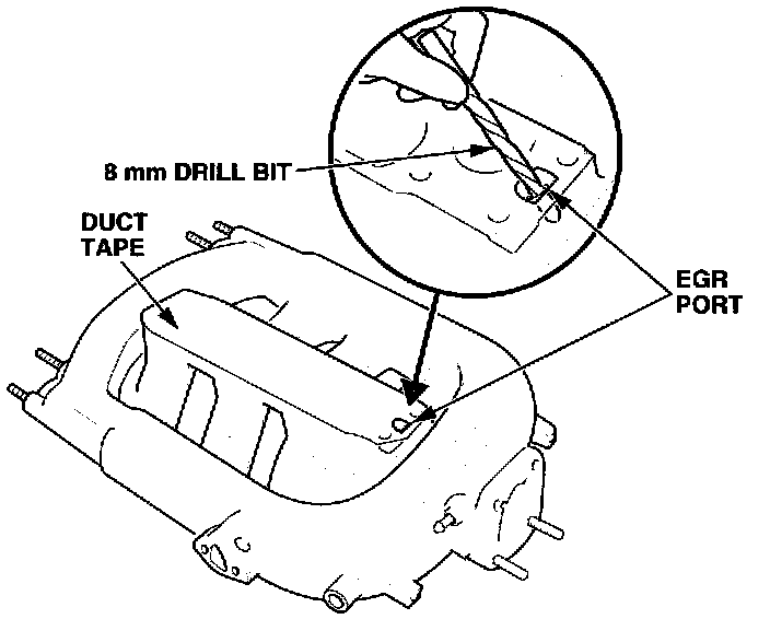 7. Use an 8 mm drill bit and carburetor cleaner to clean the EGR port in the intake manifold. Turn the drill bit only by hand. Do not use a power drill.